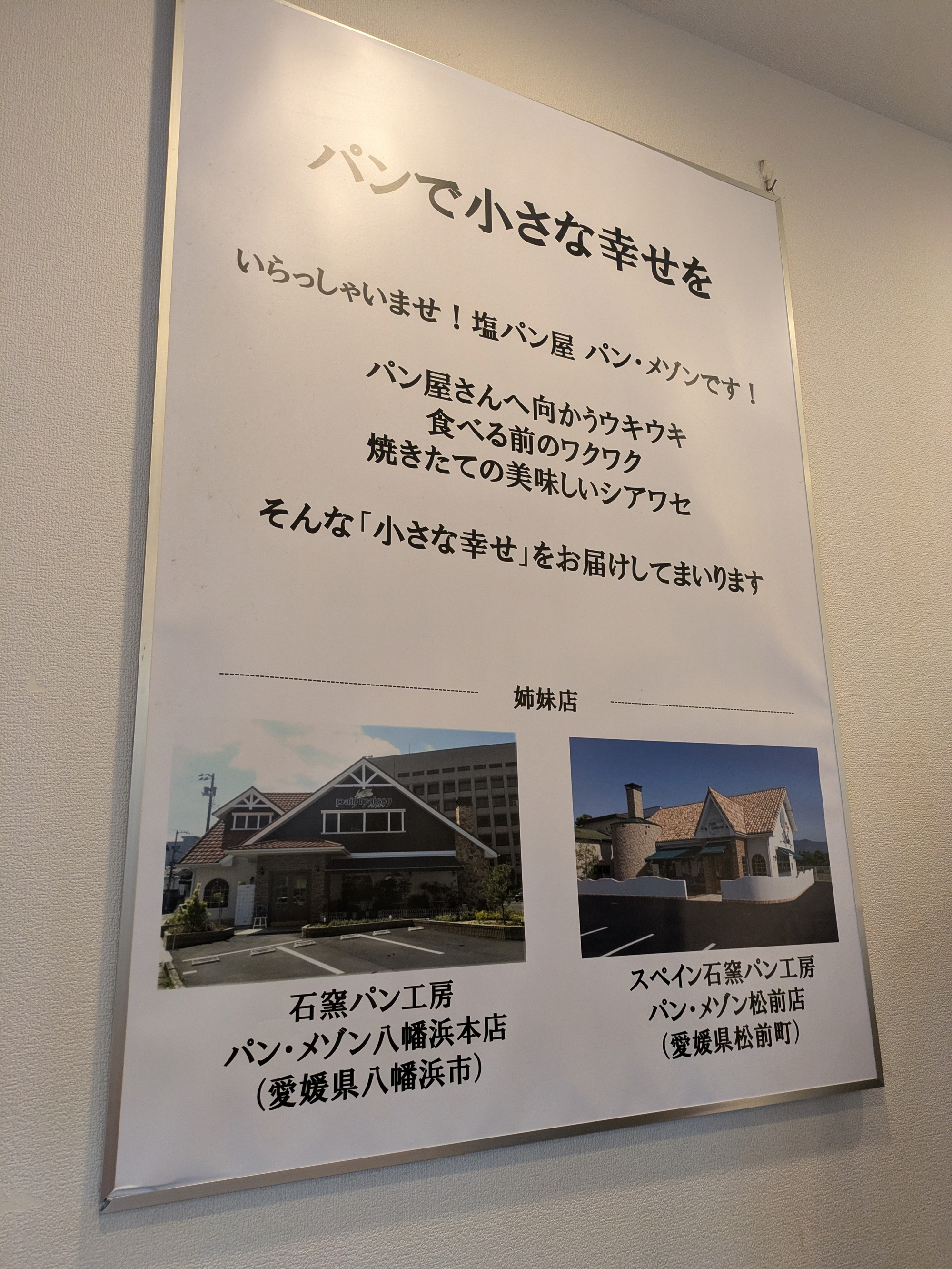 개발 초기, 깔끔한 것이 팔리는 여름철은 빵의 매출이 좋지 않기 때문에 여름에도 팔리는 빵의 개발을 시행착오를 겪고 있었던 것 같습니다. 그때 만들어진 것이 염분을 보충할 수 있는 소금빵이었습니다. 에히메현 밖의 빵집에 수행하러 갔던 아들이 '프랑스 빵에 소금을 뿌린 빵이 팔리고 있다'는 정보를 계기로 만들어졌다고 합니다. 아이부터 어른까지 먹기 좋게 부드러운 프랑스 빵에 충분한 버터로 반죽을 만들고, 기업 비밀의 소금은 너무 뿌려도 맵지 않는 암염을 사용하고 있다고 합니다.