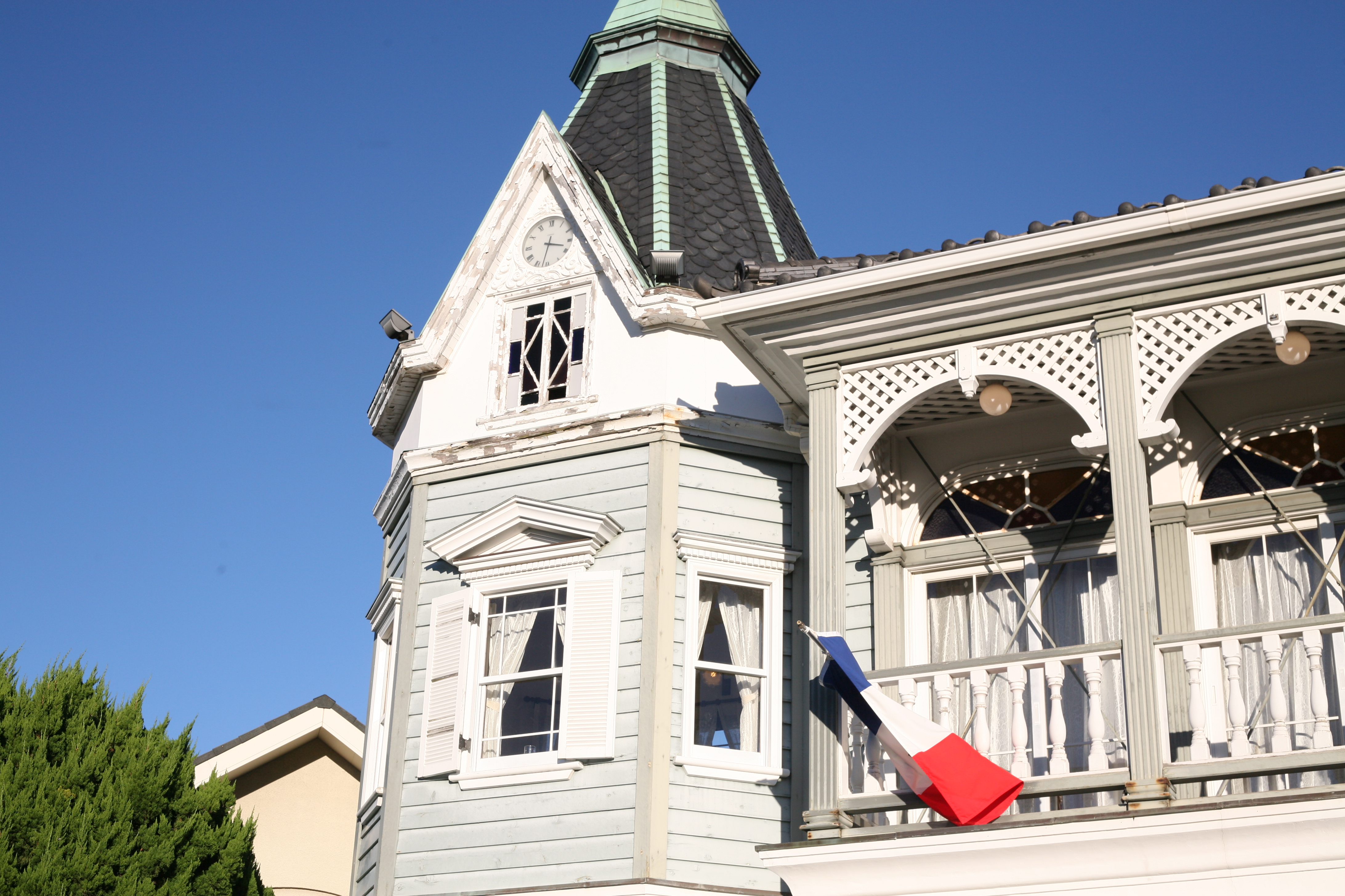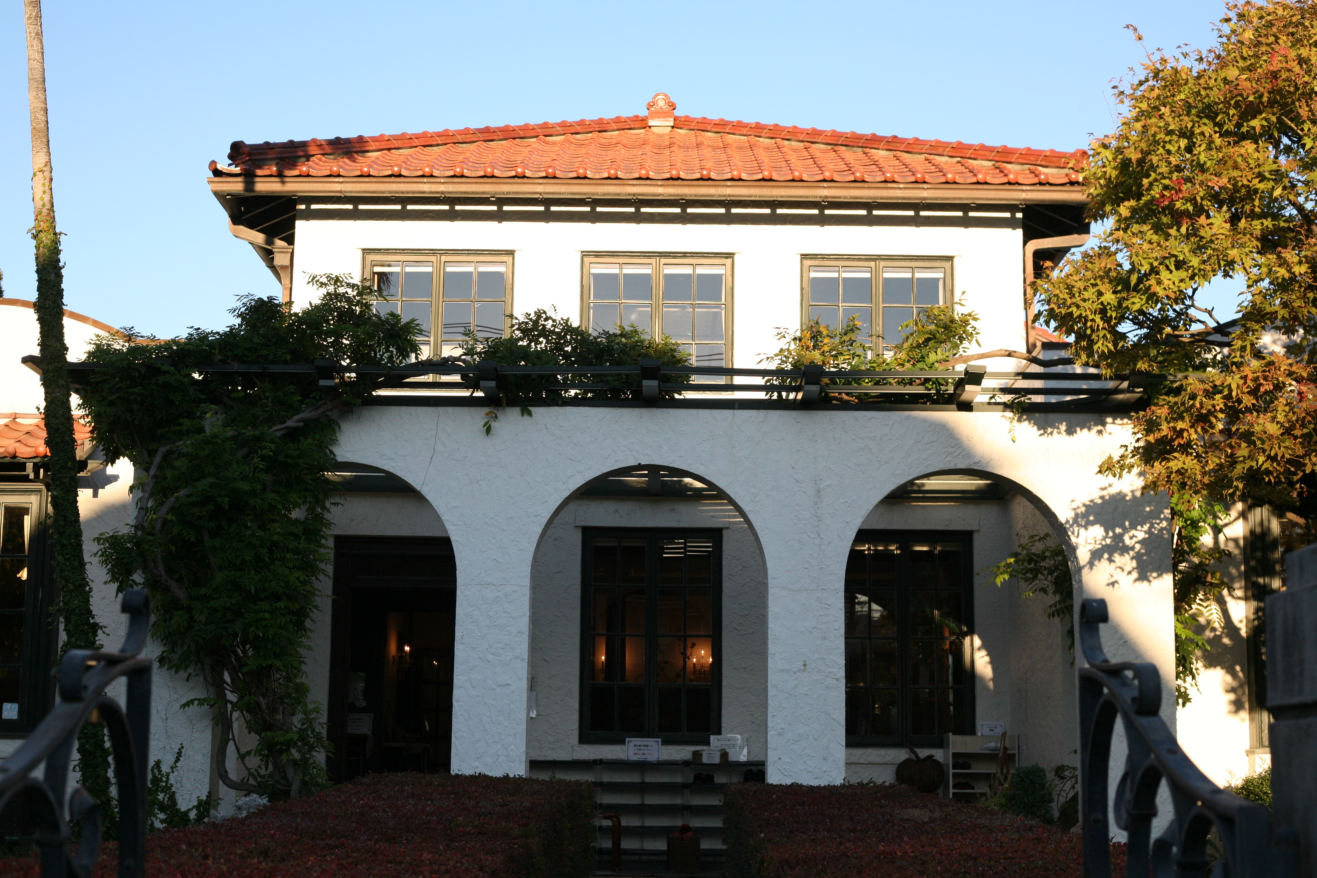 순례의 마무리로 방문한 것은, '야마테 111번관'. 붉은 기와 지붕에 흰 벽의 콘트라스트가 아름다운, 스패니시 스타일의 양관입니다. 내부는 트인 홀과 식당, 거실이 있고, 2층에는 바다가 보이는 침실과 회랑이 있으며, 항구가 보이는 언덕 공원의 로즈가든을 내려다보는 위치에 있는 이 건물은 다이쇼 15년(1926년)에 미국인 라핀 씨의 주택으로 건설되었습니다.