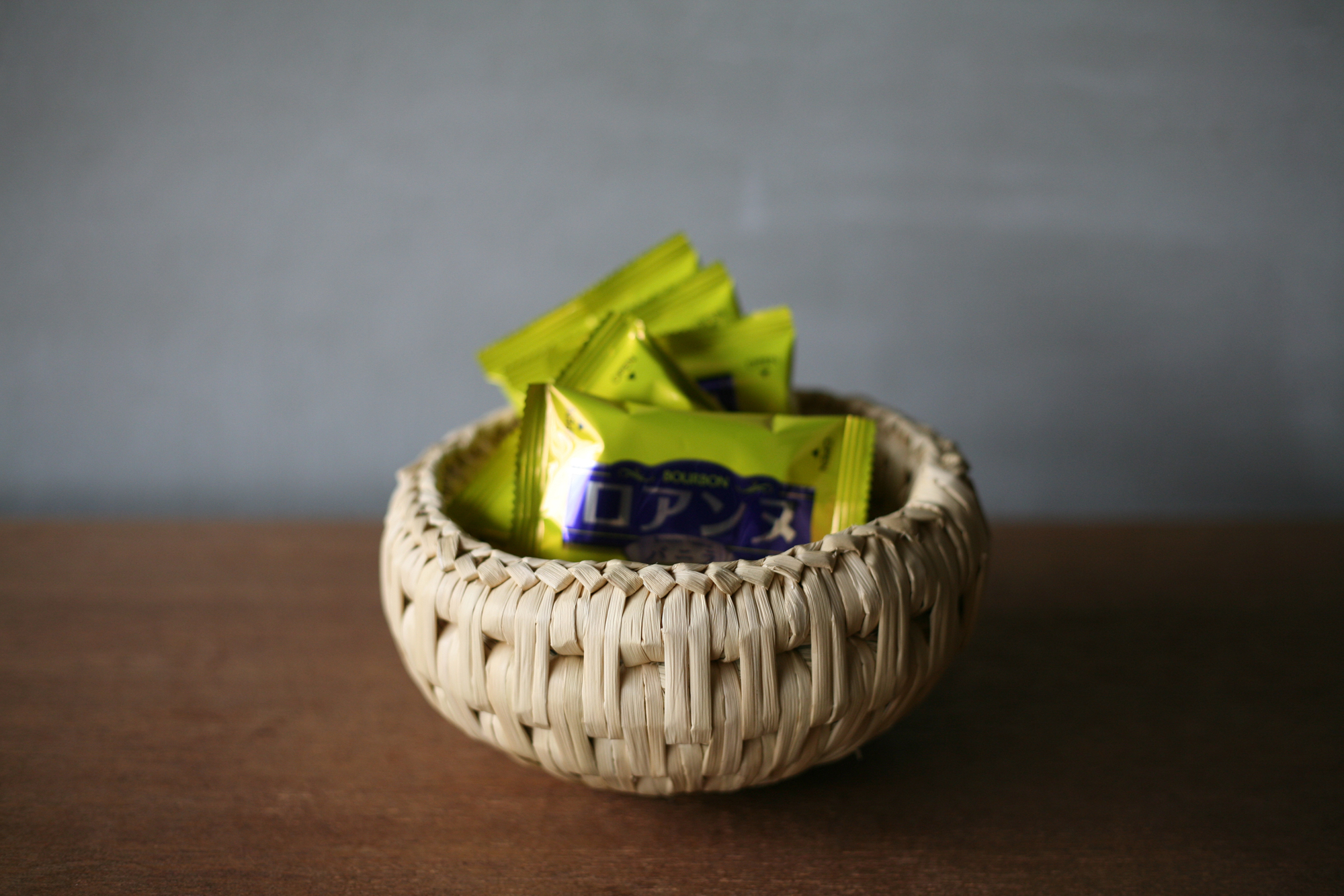 우리집에서는 커피 시간이 되면 같이 먹는 경우가 많습니다. 부르봉 본사가 있는 니가타현은 일본 유수의 쌀 생산지입니다. 쌀을 수확한 후의 짚으로 만들어진 와라무의 짚바구니에 넣어 테이블에 놓아 보는 것은 어떻습니까?