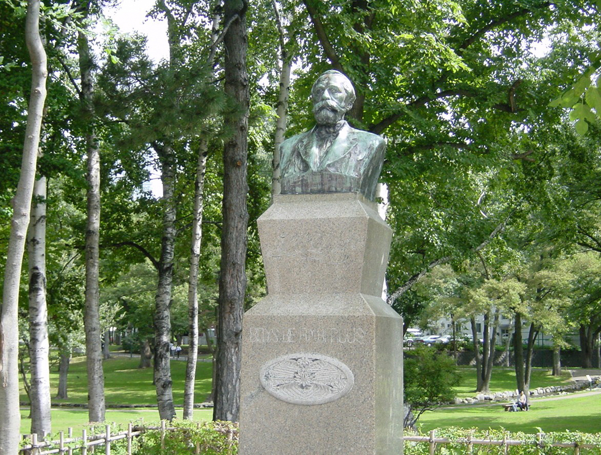 그래서 일본에 오는 계기가 되는 만남이 있습니다. 바로 도시샤 대학의 창립자인 니지마 조 입니다. 니지마 조는 1864년 밀출국하여 미국으로 건너가 기독교 세례를 받은 후 고등학교, 대학, 신학교와 미국 학교에서 공부하고 1874년 귀국할 때까지 미국에서 지냈습니다. 그 니지마 조가 배운 대학이 아머스트 대학이었고, 클라크에게서는 화학을 배우고 있었습니다. 대학을 졸업한 후, 니지마는 이와쿠라 사절단의 통역으로서 구미 제국으로 수행했습니다. 사절단의 활동을 마친 후에는 기독교 선교사로서 일본 전도 통신원이 되어 일본으로 귀국. 그 무렵 일본에서는 메이지 정부가 근대 국가로의 걸음을 진행시키는 가운데, 남하하는 러시아에의 방비와 산업의 육성을 도모할 필요가 있어, 홋카이도의 개척은 중대한 국가 프로젝트가 되고 있었습니다. 원시림이 펼쳐진 홋카이도의 개척에는 우선 농지를 정비하고 농업을 산업으로 발전시켜 사람이 살 수 있는 환경을 조성하는 것이 필요했습니다. 홋카이도의 혹독한 기후나 광대한 토지를 개척할 필요성 때문에, 대규모 개척의 경험이 있는 미국으로부터 기술자를 초래하게 되어, 거기서 일본에 귀국하고 있던 니지마 조가, 아머스트 대학에서 가르침을 받은 클라크 박사를 정부에 소개한 것입니다.