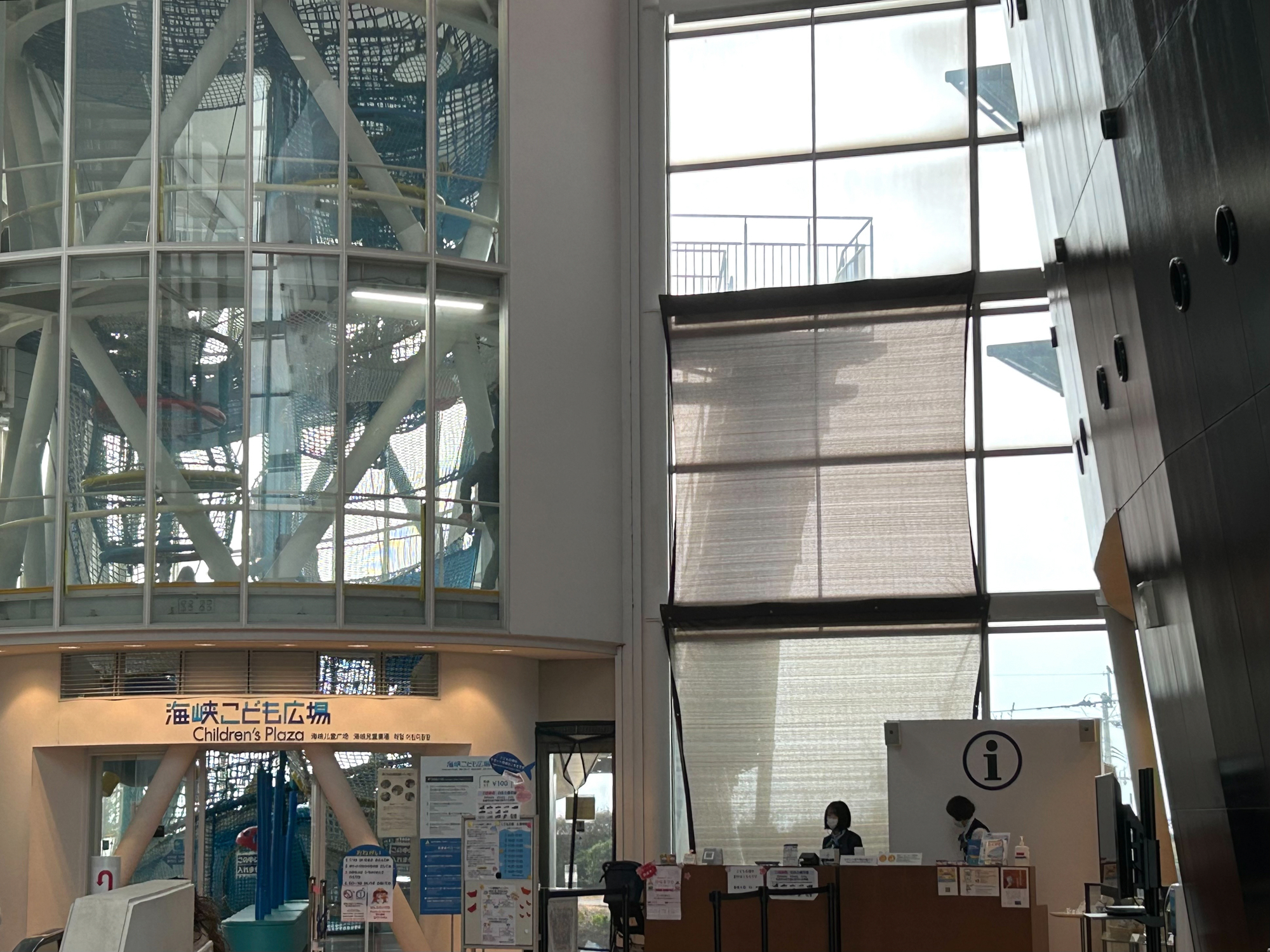 해협에 관한 역사를 재현한 '해협 역사 회랑'과 다이쇼 시대의 거리를 재현한 '해협 레트로 거리', 아이들에게 대인기인 마음껏 몸을 사용해 놀 수 있는 푸른 슬로프넷의 놀이 공간 '해협 어린이 광장', 게임 감각으로 바다에 관련된 일을 체험할 수 있는 '해협 체험 존', 최상층에는 멋진 경치를 보면서 카페를 이용할 수 있는 프롬나드 데크가 있어, 간몬해협을 마음껏 맛볼 수 있습니다. 건물 밖으로 나가면 바다 쪽에는 초지가 펼쳐져 있기 때문에 멈춰 있는 큰 배를 바라보며 피크닉도 추천합니다.