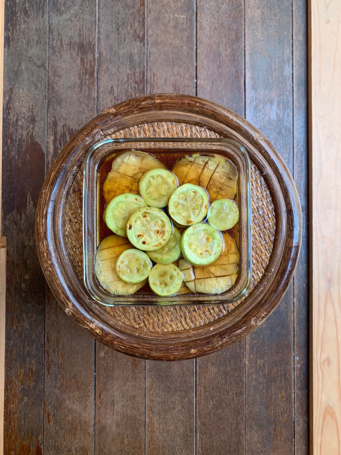 제철 시기는 다양합니다. 계절에 따라 야채 가게나 마트에 일반 야채와 마찬가지로 구하기 쉬운 가격으로 진열되기 때문에 교토에서 생활하기 시작한 후 교야채를 사서 조리해 보는 것이 매일의 즐거움 중 하나가 되었습니다. 이번 여름은, 통통하게 살이 오른 가모 가지를 둥글게 잘라 국물에 담그기도 하고, 만간지 고추를 구워서 맥주로 한잔하기도 했습니다. 쿠죠 파에는 일년 내내 신세를 지고 있고, 겨울에는 쇼고인 무 절임이나 조림 요리도 좋습니다.